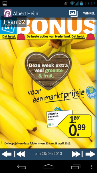 Navigeren door de stapel virtuele reclamepost verloopt natuurlijk en eenvoudig. Dankzij een zoekfunctie vind je de laatste editie van de blaadjes van je favoriete winkels. Bladeren door een Reclamefolder (met hoofdletter ja) doe je door naar links of rechts te vegen op je touchscreen.