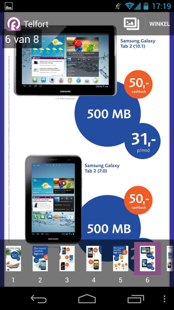 Reclamefolder tovert de folders beeldvullend op je scherm. Inzoomen is maar beperkt mogelijk. Heb je een tablet, dan is dit niet zo'n probleem. Op een telefoon met een klein scherm is een betere zoomfunctie wenselijk, zodat je bijvoorbeeld de winkeladressen onder in beeld kunt onderscheiden.