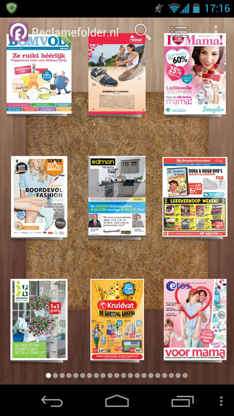 Van Albert Heijn tot Zeeman; Reclamefolder brengt alle terugkerende reclameblaadjes naar je Android-apparaat. Op zeven pagina's met elk negen folders (63 in totaal dus) krijg je toegang tot folders van alle gangbare winkelketens in Nederland.